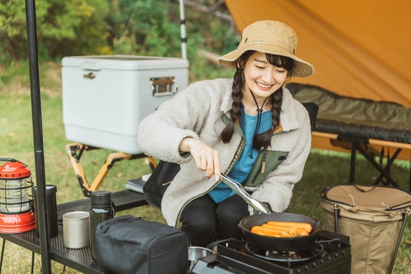 最近人気のソロキャンプ。四国三郎の郷では、広々とした区画サイトで一人でも安心して過ごせる環境が整っています。