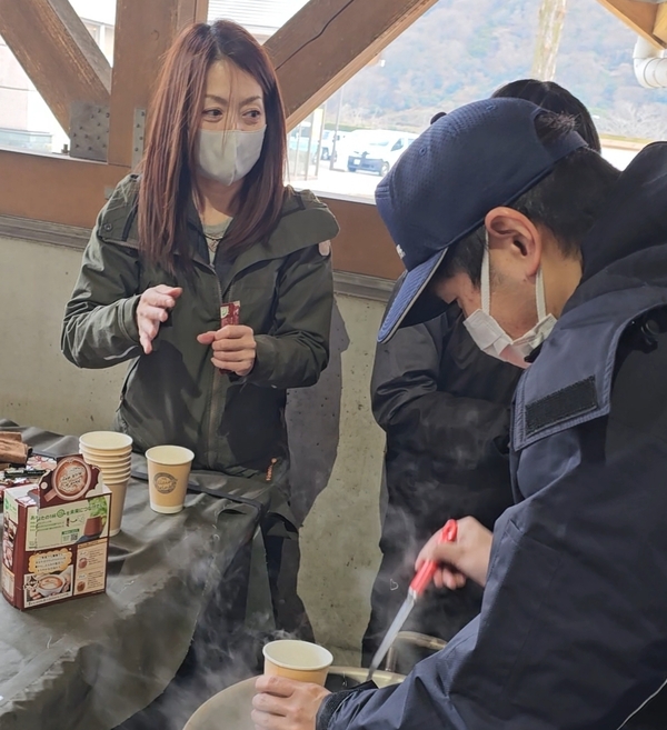 低い気温の中でのエマージェンシーシート体験やナイフを用いた薪割りと火おこしなどを通じて、